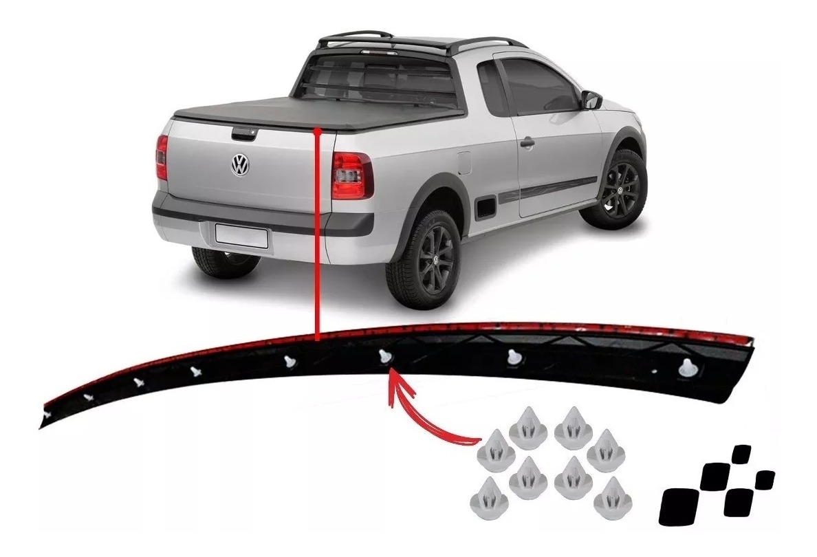 Item: Moldura de la tapa trasera / Plástico negro. Modelo original. Aplicacion: VW Saveiro G5 / G6 / G7Modelo: 2012 - 2017